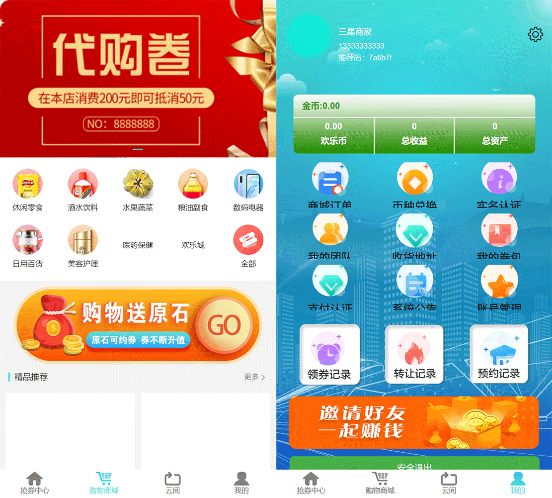 站长评测:源码安装测试没有发现BUG,源码自带的有些图片丢失,不影响使用,个人中心那里有些汉字的CSS样式乱了,稍微一改就可以。后台功能很完善。这套源码应该就是购物返金币,然后金币当钱使。