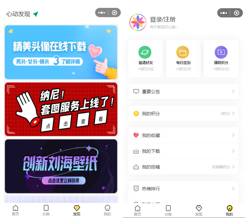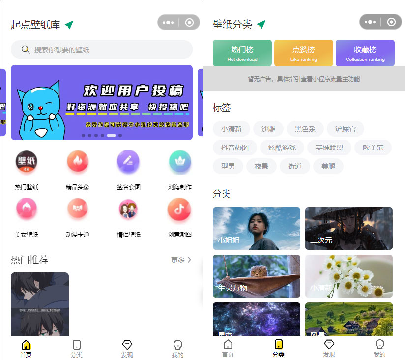 PHP > 手机壁纸动态壁纸头像小程序源码 用户投稿+采集+详细视频教程 价值400元