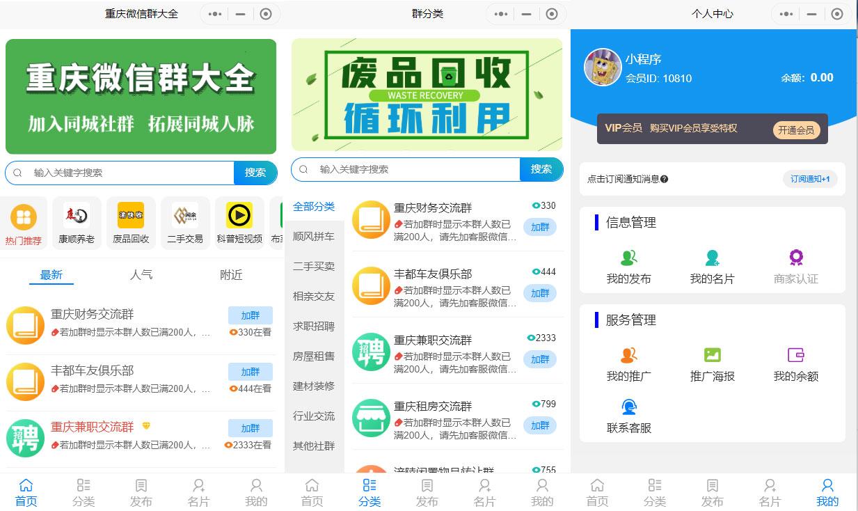 1、一个集发布、展示社群信息、人脉推广的裂变工具/平台。