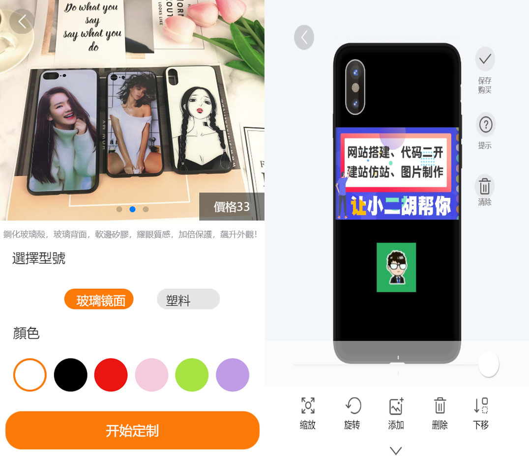 可以二次开发,加其他产品的diy。无需下载,不受系统限制,方便用户定制DIY手机壳。