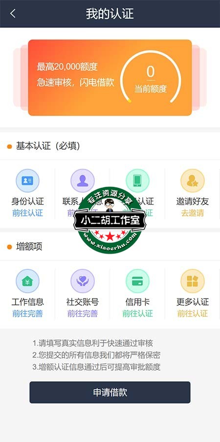 站长评测:整体还可以,流程好像是用户注册->认证(不认证点击借款的时候会提示对话框,但是没有字,应该是BUG)->借款->后台审批->打款,免签好像是在开通VIP能用到。