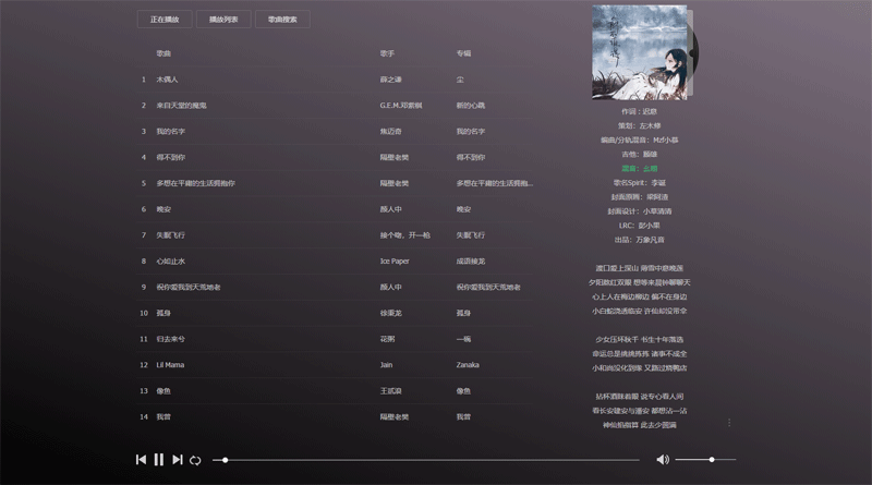 站长评测:完整可用,聚合了网易云音乐、QQ音乐、虾米音乐、酷狗音乐、百度云音乐,但是某些版权音乐依旧不能播放比如周杰伦的,具体参照演示站。