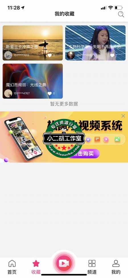主要功能:主要包含“首页”、“收藏”、“频道”、“我的”、“视频”、“设置”等功能,实现用户对APP端界面管理及使用各项功能。