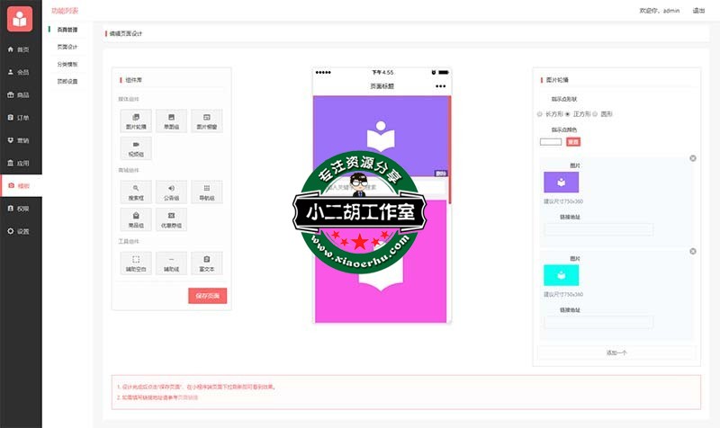 站长评测:拖动设置小程序页面,有详细安装使用说明。