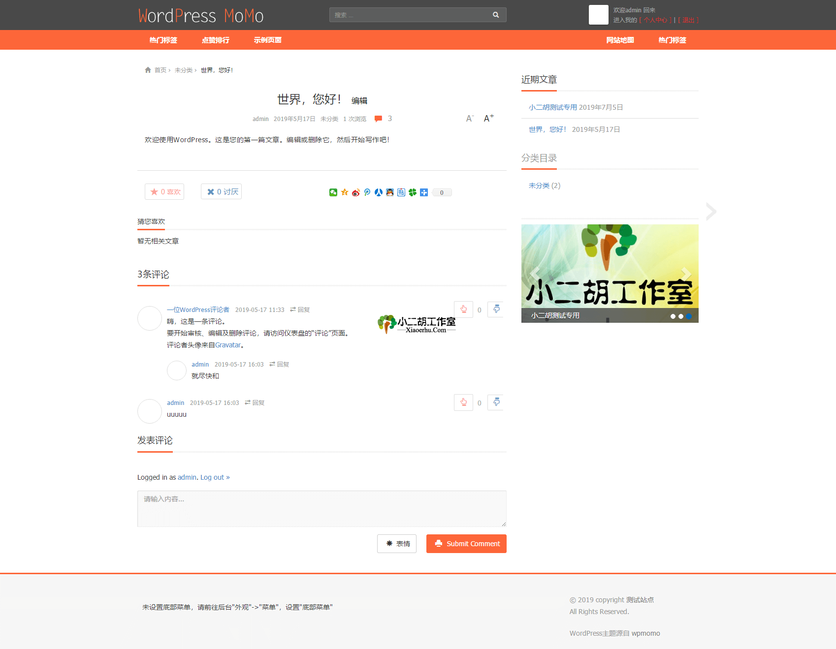 Wordpress > Wordpree模板 响应式两栏博客主题:MoMo 1.0
